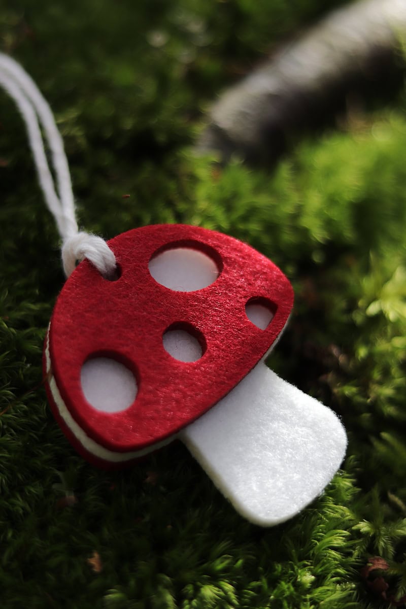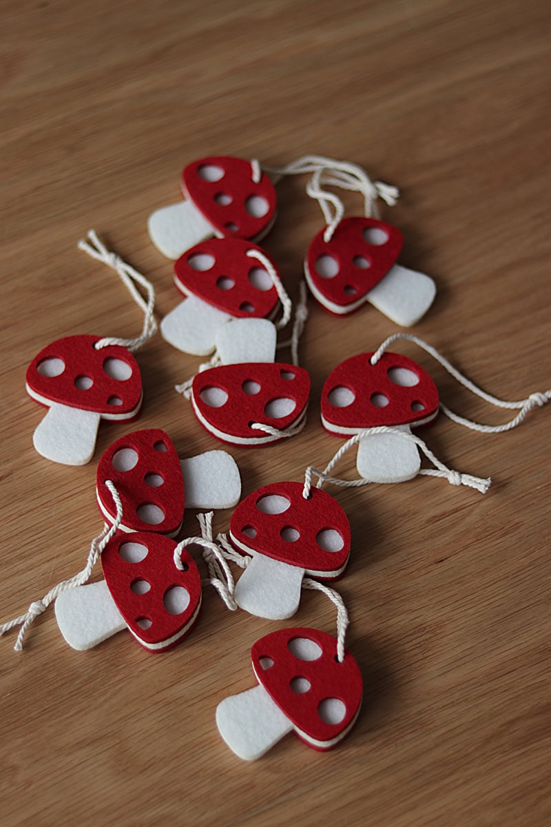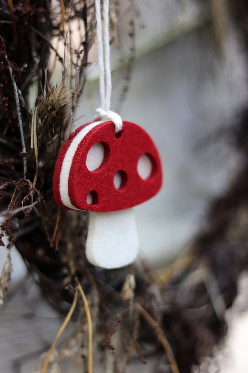 Wyjątkowy i oryginalny dodatek w kształcie filcowego grzybka muchomora.