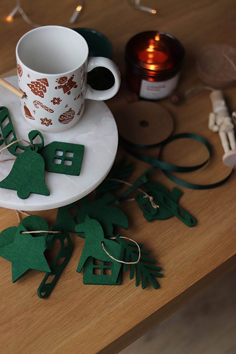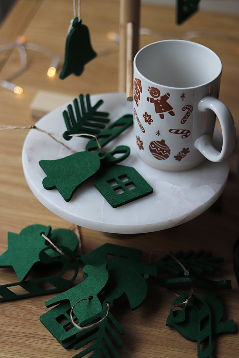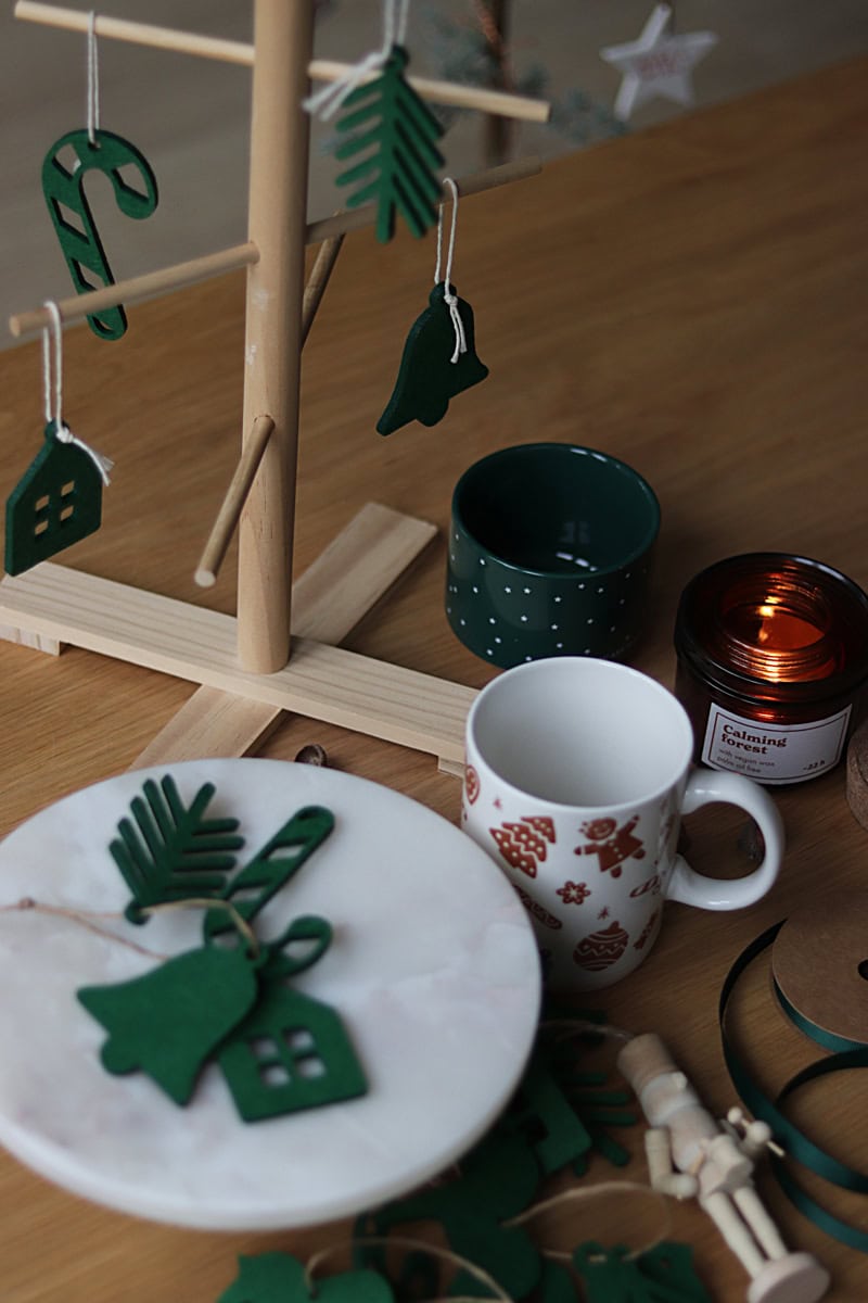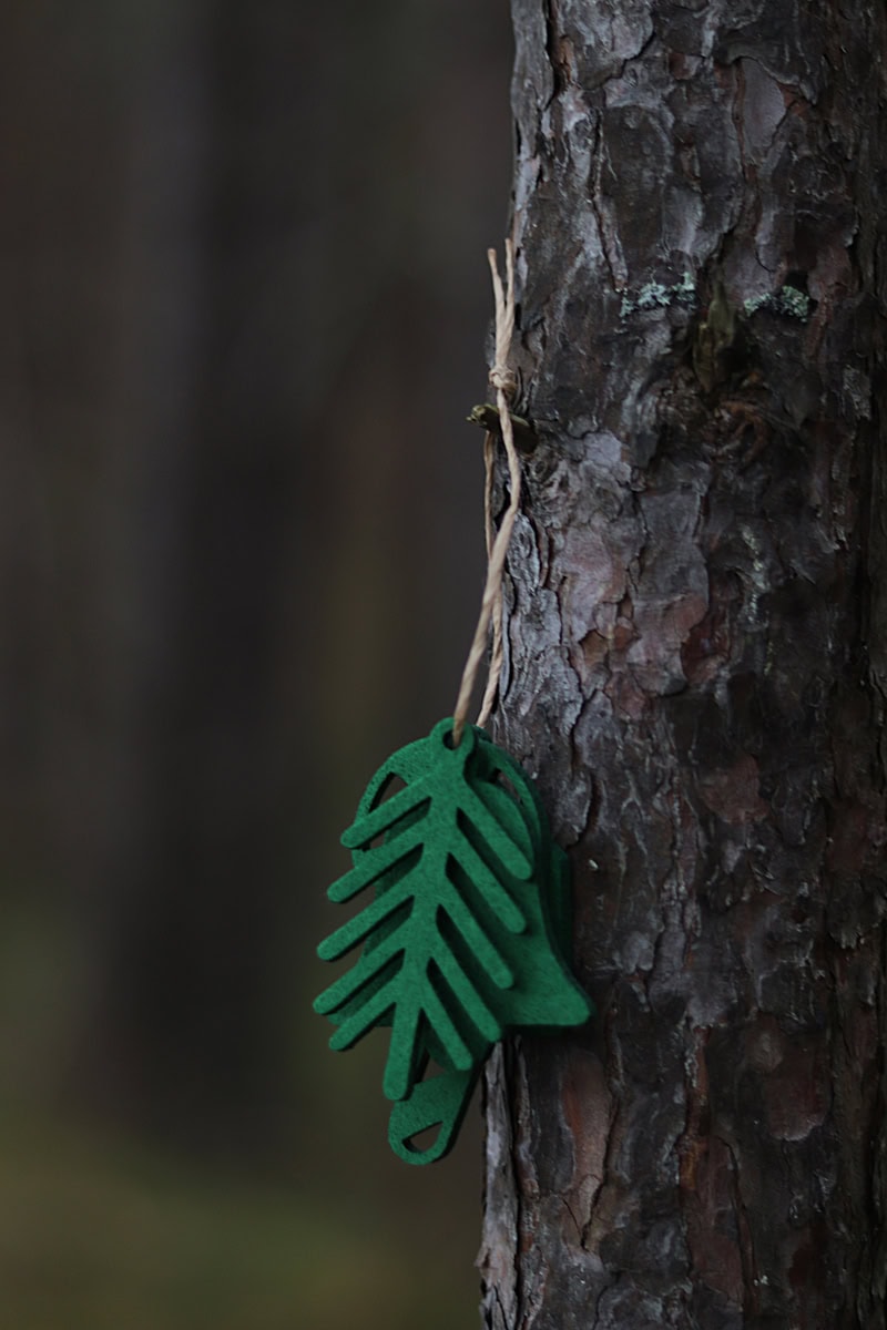 Limitowana seria filcowych zawieszek w kolorze świątecznej zieleni.