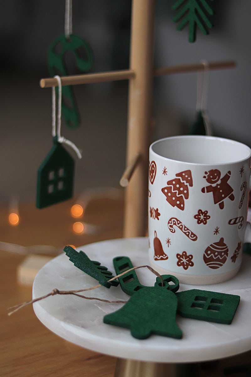 Limitowana edycja 4 filcowych zawieszek w kolorze, ciepłej świątecznej zieleni.